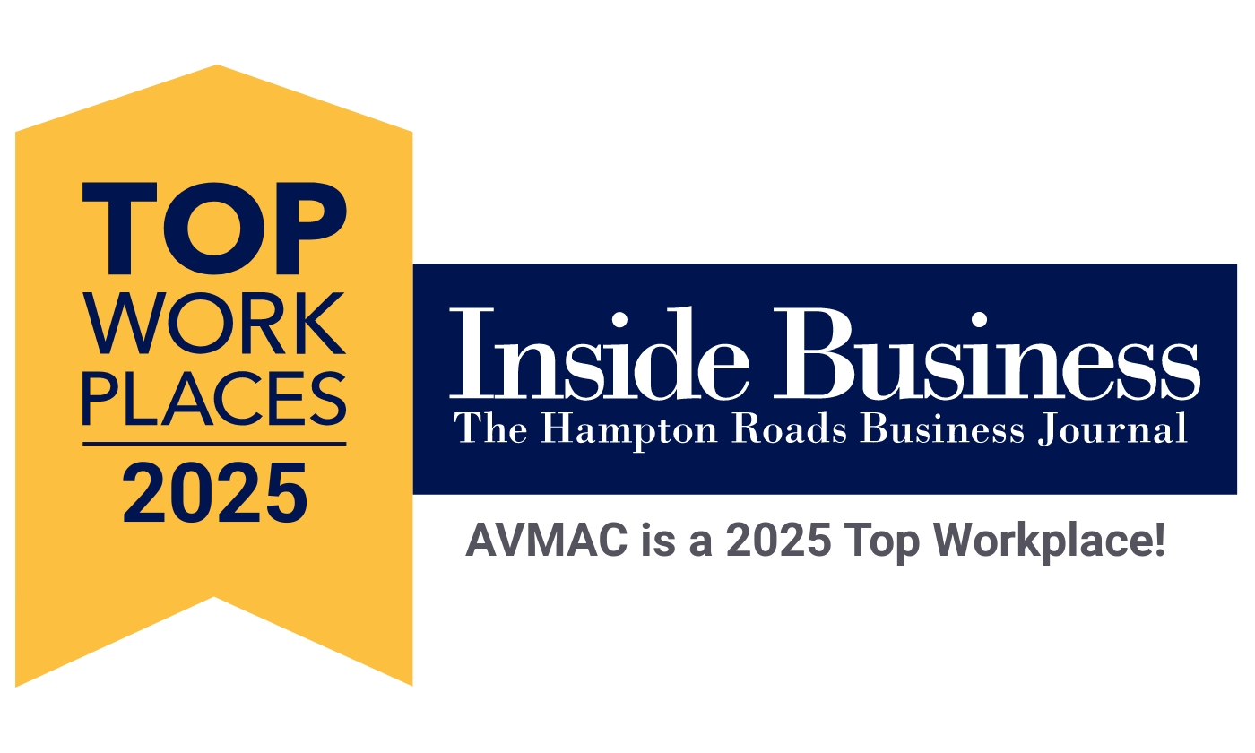 AVMAC has been awarded a Top Workplaces 2025 honor by the Inside Business Hampton Roads Business Journal, making this year AVMAC’s sixth consecutive year being recognized as a Top Workplace. The list is derived from feedback gathered and calculated by a third-party survey conducted by employee engagement technology partner Energage, LLC. Measured metrics include feedback on workplace factors ranging from employee wellbeing and worth to growth opportunities and compensation.